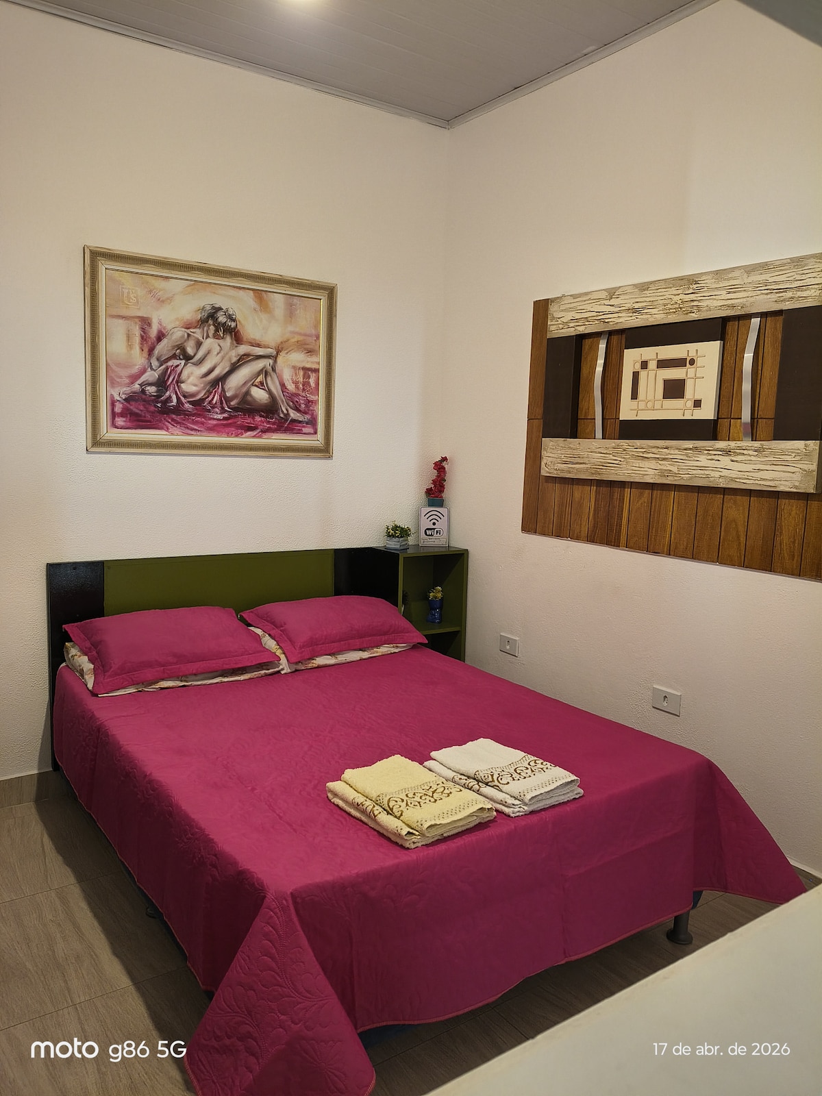 Ground floor apto in downtown Tanabi, ideal for up to 3 guests. Double bed, sofa, air conditioning, full kitchen, Smart TV, Wi-Fi, basic washing machine and quiet neighborhood. 📍 Downtown: near Hospital de Tanabi, Santa Casa de Misericórdia, Anhanguera University, Praça da Matriz and Parque da Cidade. 🅿️ Parking spot for small vehicles. 🔑 Smart lock — self check-in.