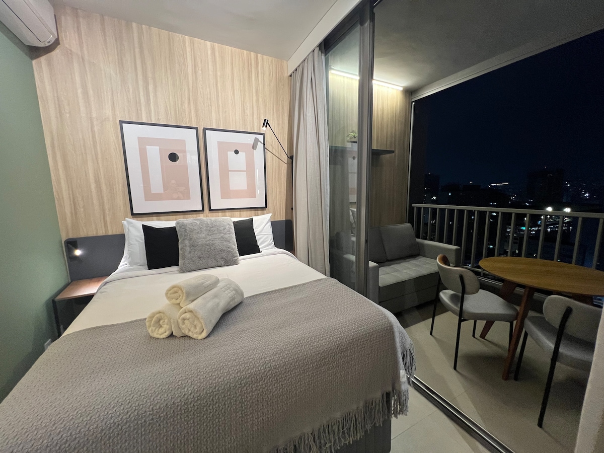 Arrivée autonome🗝 24 h/24 avec serrure électronique : entrez à tout moment avec un accès sécurisé et facile 🍳 Cuisine entièrement équipée 🧺 Laveuse et sécheuse 🛋 Salon avec télévision connectée + Internet haut débit Lit double🛏 confortable Équipements du bâtiment : 🏊 Piscine 🏋 Salle de sport Salle 🎯 de jeux 🏀 Terrain de sport Épicerie ouverte🛒 24 h/24 📍 À seulement 950 m de la gare (13 min à pied) avec un accès facile aux principales autoroutes, à proximité de Pinheiros et d'autres quartiers de São Paulo. ‼ ️Interdiction de fumer ou de faire de la musique forte Un kit d'hygiène de💝 bienvenue est inclus