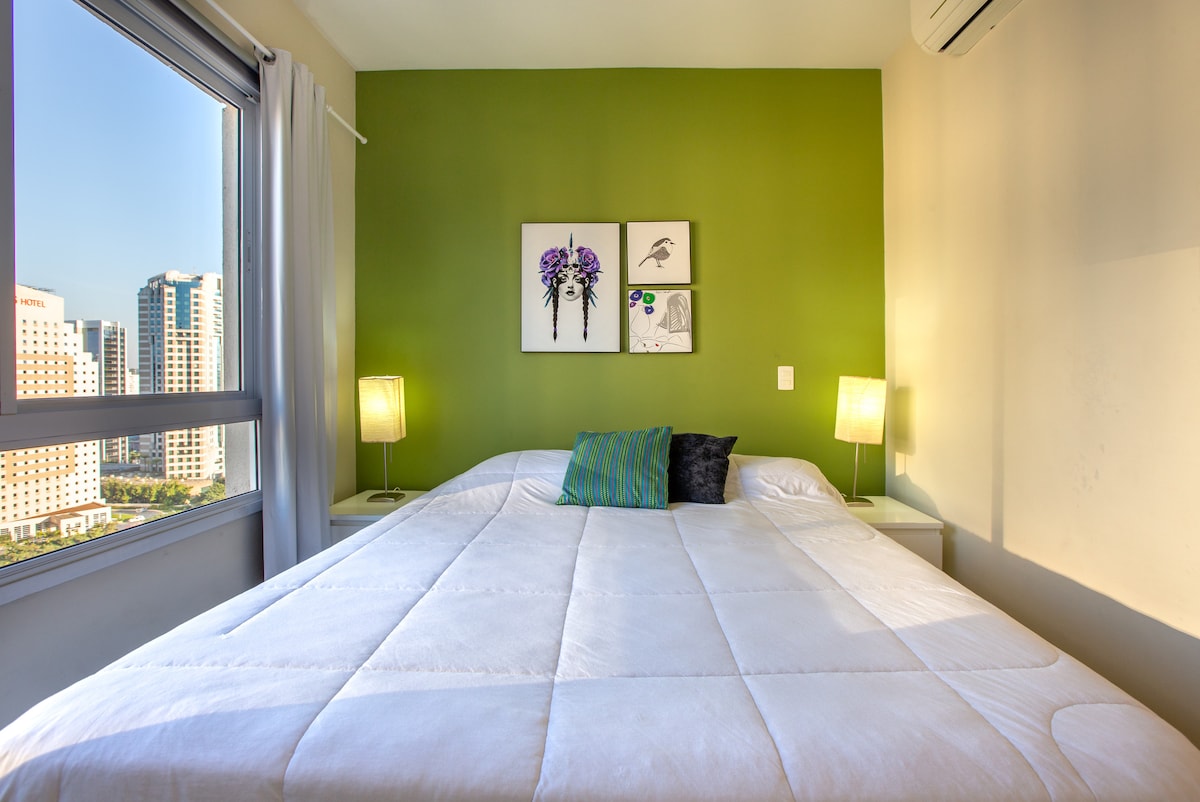This stylish 50m2 apt. located at Bela Vista, has 24hr doorman. 2 bedrooms (only 1 with AC, and queen bed, the second one is quite small and can be used as an office, fitting a double-sized sofa-bed) and 1 bathroom. With amazing views from every window, it is a great place to work and relax. The private jet tube at the balcony is a fantastic spot to enjoy the city views. Parking - cable/smart tv, fridge with ice maker, oven, wash&dryer, cooktop, microwave, dishwasher and ultra fast internet.
