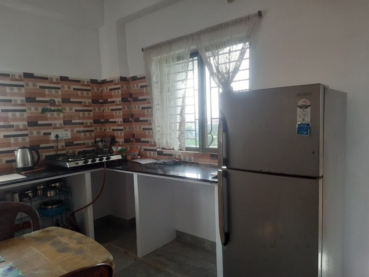 Profitez du confort dans notre appartement moderne d'une chambre à Mayapur. Notre logement dispose de : Une chambre confortable parfaite pour passer une nuit de sommeil reposante Un salon confortable pour se détendre Une cuisine bien équipée pour vos besoins culinaires Une salle de bain propre avec eau chaude et toilettes modernes Un balcon privé pour profiter de l'air frais Climatisation pour votre confort Idéalement situé, notre appartement offre à la fois commodité et tranquillité, ce qui le rend parfait pour les voyageurs en solo, les couples ou les petites familles.