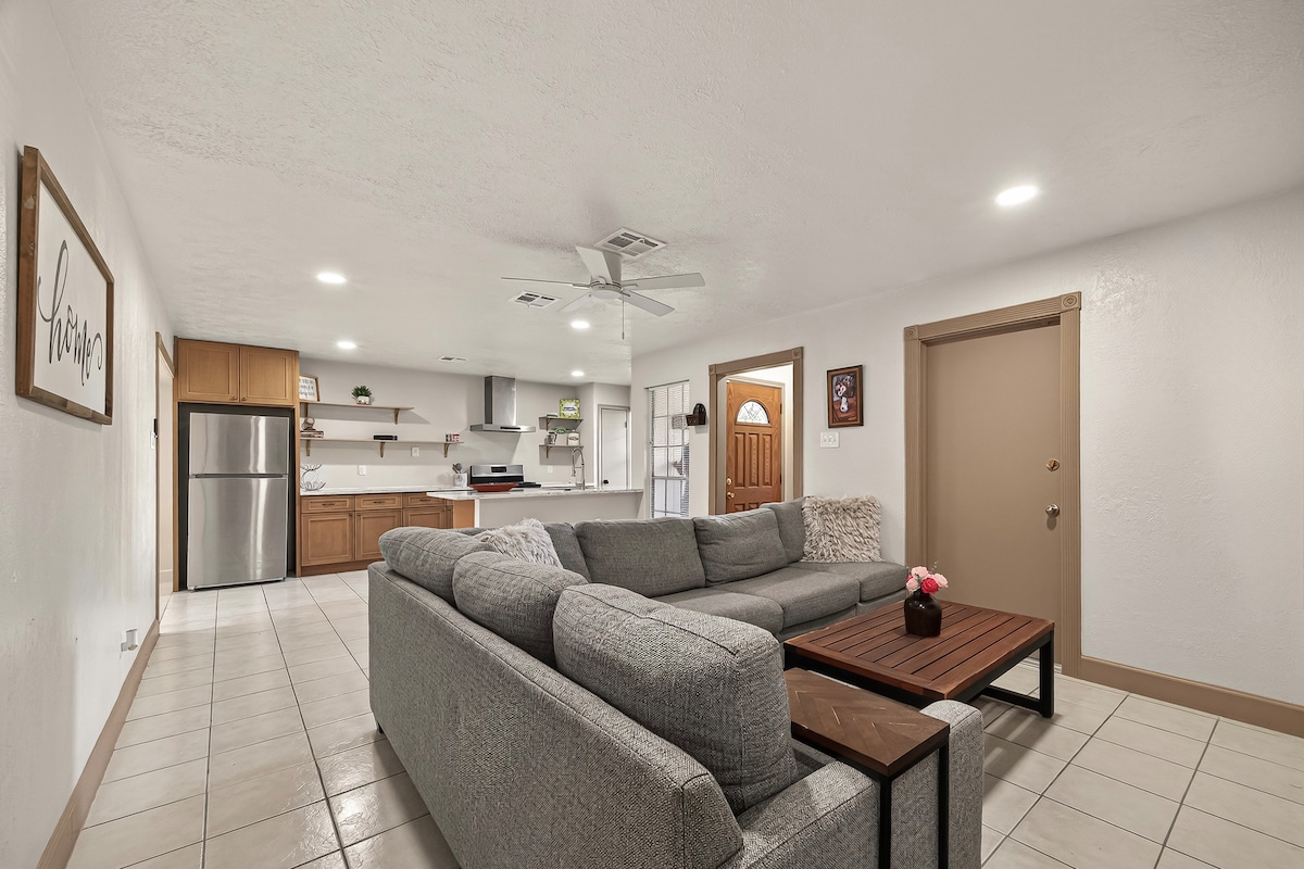 L'ensemble du groupe bénéficiera d'un accès facile à tout ce que Houston a à offrir dans cette maison située au centre. Le bungalow « MOON LIGHT BY THE BAY » peut accueillir 6 personnes, 2 PLACES DE STATIONNEMENT (stationnement gratuit dans la rue) et un espace cuisine/salon ouvert. Parfait pour recevoir la famille et les amis. Fournit une connexion Wi-Fi, une télévision connectée et un coin salon extérieur. Profitez de votre séjour en vous détendant dans la douche debout de la salle de bain principale et en vous relaxant sur le canapé avec votre livre préféré. »