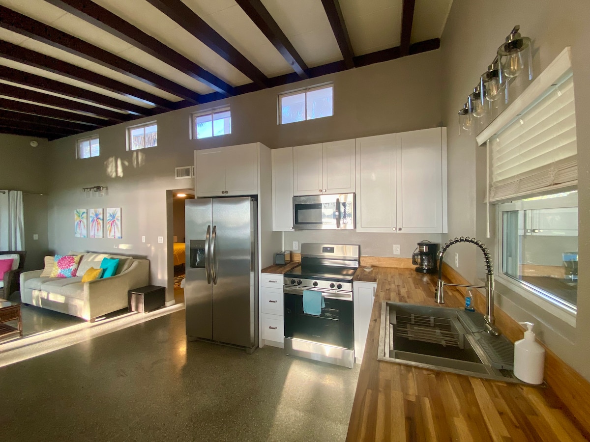 Le Retreat peut accueillir confortablement 4 personnes. Notre maison de 2 chambres et 2 salles de bain dispose d'une piscine avec une cascade et d'une cour arrière clôturée. Ce paradis pittoresque vous fera vous sentir détendu assis près de la piscine en profitant d'un bon livre avec un verre tout en écoutant la brise passer à travers les palmiers dans la cour arrière. Elle est située dans une rue calme. Mais à quelques minutes de différentes plages, terrains de golf, boutiques et restaurants, attractions et parcs. Quelque chose à faire pour toute la famille.