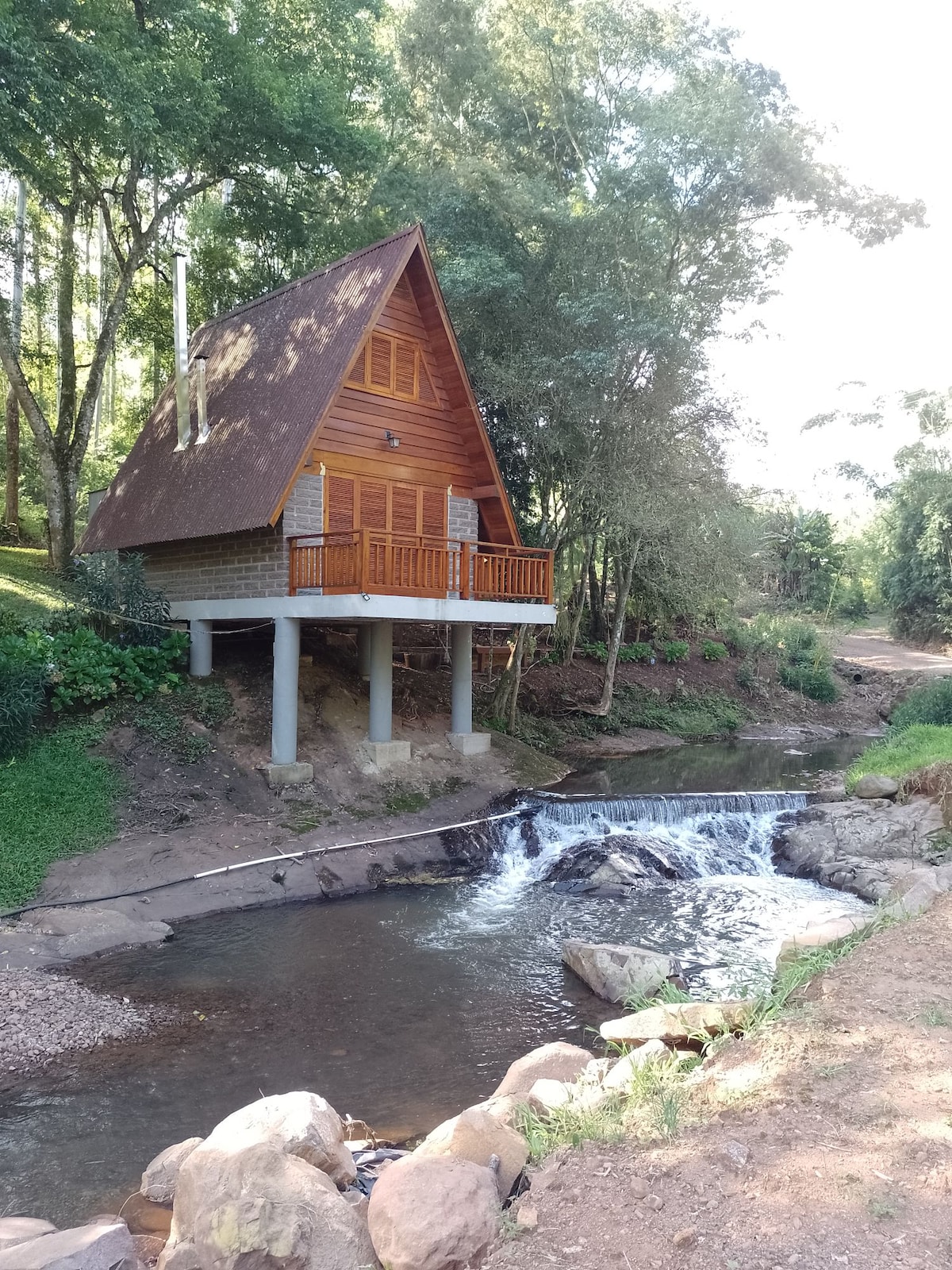 Une cabane A frame immergée dans la forêt indigène et dans les vignobles d'une famille d'origine italienne. Conçu pour se réveiller au son des oiseaux et dormir au bruit de l'eau. Le point culminant est à l'arrivée, la terrasse est au-dessus d'une cascade. La cuisine est complète avec des ustensiles de haute qualité. La salle de bain donne sur la forêt, baignoire d'immersion et des équipements L'Occitane. Toutes les pièces sont décorées dans les moindres détails. Idéal pour se détendre et se mettre au bon rythme de la vie.
