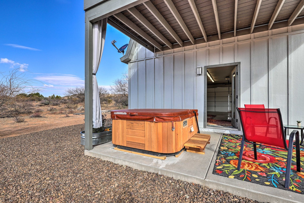 Découvrez le concept de tiny house sans l'esprit minimaliste. Profitez d'équipements tels que des comptoirs en granit, des accents en cuivre personnalisés et un foyer d'angle confortable dans un spacieux chalet de 380 pieds carrés surplombant une micro-ferme. Détendez-vous dans le salon extérieur privé avec un barbecue et une table à gaz couverte. Situé à seulement 20 minutes des vignobles de Jerome, Sedona et Page Spring. Passez vos soirées à flâner dans les nombreuses salles de dégustation et restaurants de la vieille ville historique de Cottonwood à 5 minutes.