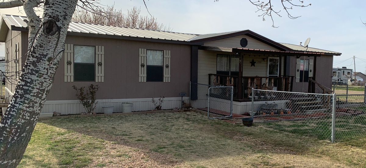 TROUVEZ RARE AU PALO DURO CANYON ! PETIT DÉJEUNER COMPLET, AVEC MIMOSAS ! Beaucoup de commodités que vous ne trouverez nulle part ailleurs ! Idéal pour les télétravailleurs. Cabane spacieuse sur 6,5 acres isolés. 4 couchages, mais 8 SI vous louez également l'autre chalet sur la propriété (The Hideout at a Palo Duro Canyon- Rider's Roost). Il n'y a pas d'autre cabane de luxe plus proche de Palo Duro Canyon ! La seule location dans la région avec un étang de pêche, des chevaux, un parking couvert et des porches grillagés. Votre argent soutient les chevaux handicapés !