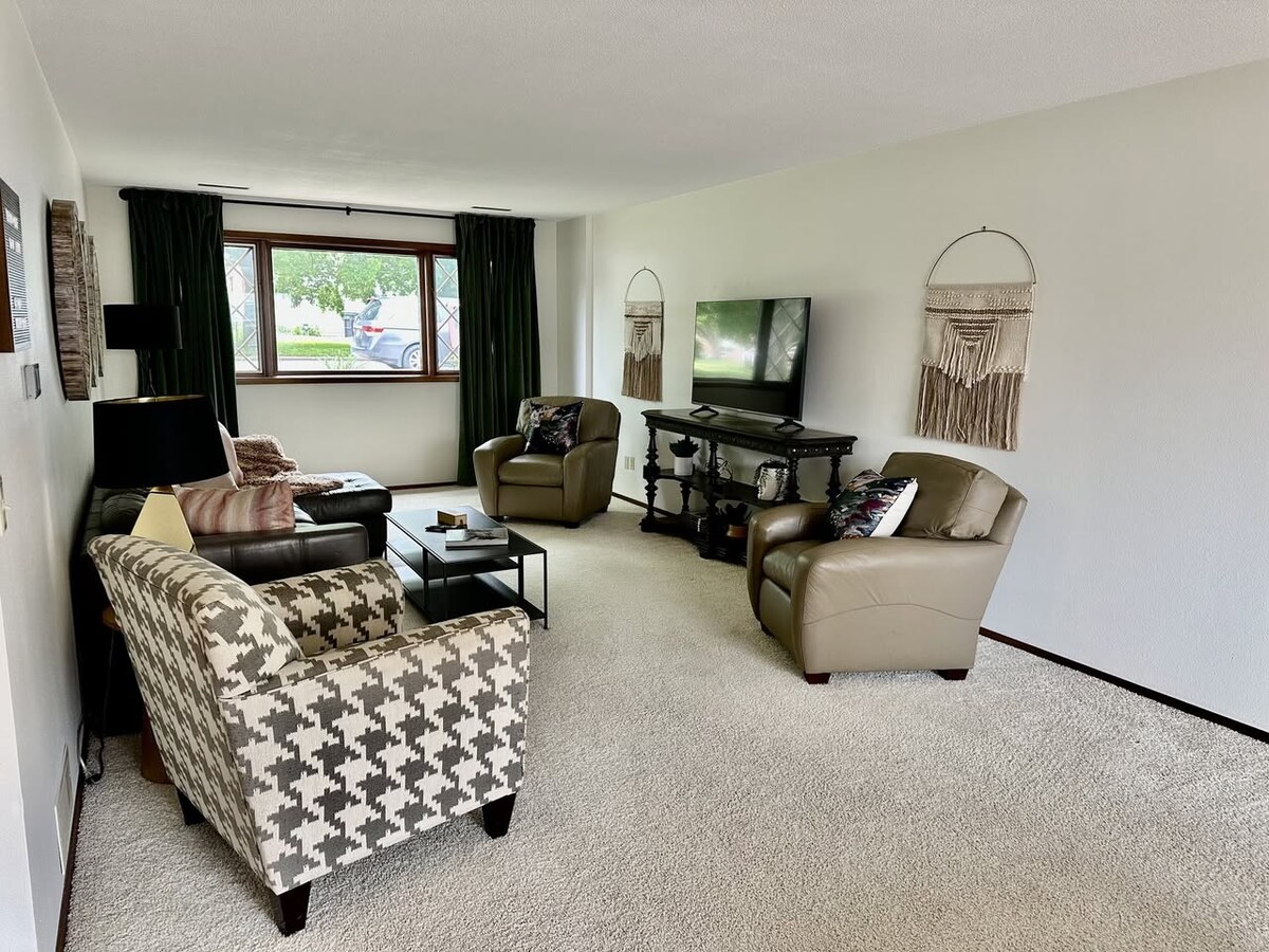 Appartement d'angle au rez-de-chaussée dans un triplex calme avec entrée privée. Une chambre avec un lit queen size, une chambre supplémentaire qui dispose d'un coin repas et d'un poste de travail. Matelas gonflable Queen Size disponible pour les voyageurs supplémentaires. Internet haut débit et lave-linge/sèche-linge pour vous faciliter la vie. À seulement un pâté de maisons de l'hôpital et à trois pâtés de maisons du centre-ville de Grinnell. Patio privé, un garage attenant pour une voiture, plus un stationnement supplémentaire en dehors de la rue. Grande salle de bain avec douche à l'italienne. Tous les équipements dont vous avez besoin.