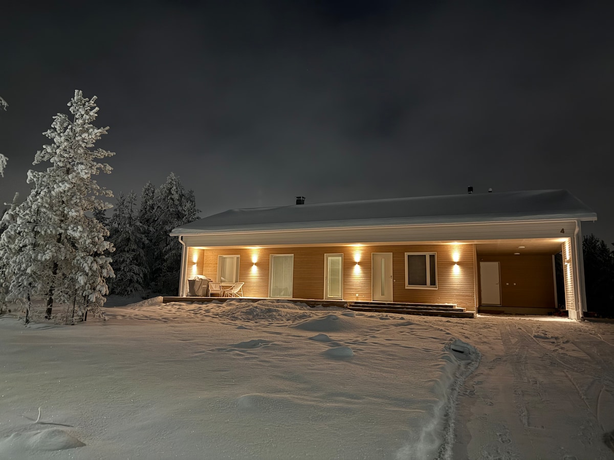 Oubliez vos soucis dans ce logement spacieux et serein. Maison en bois avec sauna et Spa Nordique en Laponie, 7 minutes de la station de skis de Ritavalkea, ski alpin et ski de fond à partir de décembre jusqu'en Mai. Activités de motoneige et chiens de traîneau disponibles sur le lac juste à côté. Magique pour les aurores boréales. Raquettes de neige offertes dans la maison, jeux pour enfants et adultes. Coin unique pour pêche et canoë, randonnées. A 1h seulement de l'aéroport et du Père Noël.