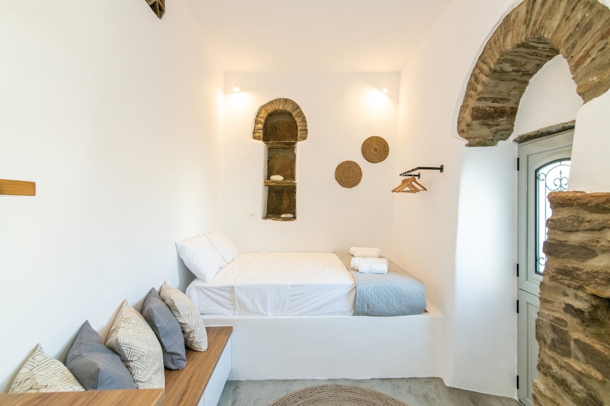 Une maison cycladique qui équilibre entre le traditionnel et le moderne, idéale pour des excursions pour deux personnes. Il combine le blanc avec la pierre de Tinos, créant une atmosphère de détente et d'insouciance, grâce à son esthétique minimaliste. Il est à 20’ - en voiture - du port de Tinos et à 10’ - en voiture - de la plage de Kolymbithra, et son emplacement au centre de l'île en fait le point de départ d'une exploration prometteuse !