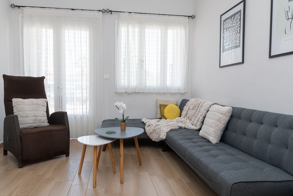 Cet appartement central offre un hébergement agréable au cœur du centre de Katerini, à côté d'un supermarché, d'une pharmacie, de restaurants, de bars et de boutiques, et de la place à quelques pas. Il dispose d'une connexion Wi-Fi gratuite, d'une cuisine équipée, d'une chambre confortable avec un lit double et dans le séjour, il dispose d'un canapé trois places qui devient un lit simple. Vous y trouverez également un balcon avec une table et des chaises pour déguster votre café. Choix idéal pour les familles, les amis, les couples ou les voyageurs en solo.