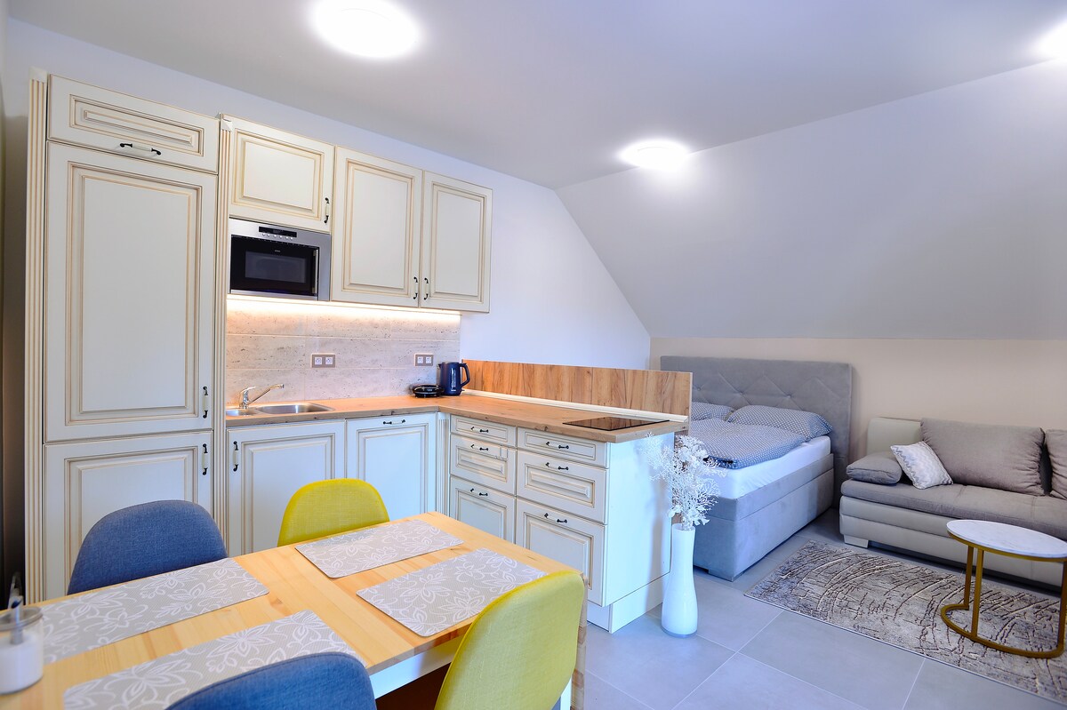 V Krušných horách nedaleko Karlových Varů a Božího Daru v malé vesnici jsem si vytvořili naše útočiště. S citem rekonstruované podkroví s výhledem do přírody a koupacím sudem na terase (za příplatek) a domácím kinem. Rádi Ti naše místo propůjčíme. K dispozici Ti bude celý prostor včetně terasy. Pomůžeme naplánovat výlet a objevit krásy Krušnohoří. Staráme se o naše místo s láskou a pečlivostí. Chceme, aby ses tu i Ty cítil jako doma. Hory, příroda i lázeňské město od každého je tu trochu!