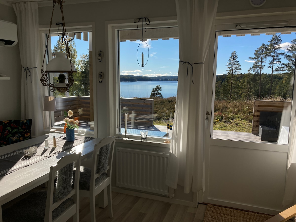 Détendez-vous dans ce merveilleux chalet sur votre propre cap. Profitez-en pour vous baigner, pêcher ou vous détendre devant le feu. À 7 mètres de l'eau, vous pouvez profiter du lever et du coucher du soleil pendant la journée. Promenez-vous dans la forêt et cueillez des baies et des champignons ou profitez simplement de belles promenades. Faites du ski alpin ou de fond en hiver et profitez du paysage scintillant. Empruntez des kayaks, pêchez, baignez-vous, profitez de la forêt, faites du ski et de la belle nature. Si cela n'est pas disponible, consultez ma deuxième maison dans le même style.