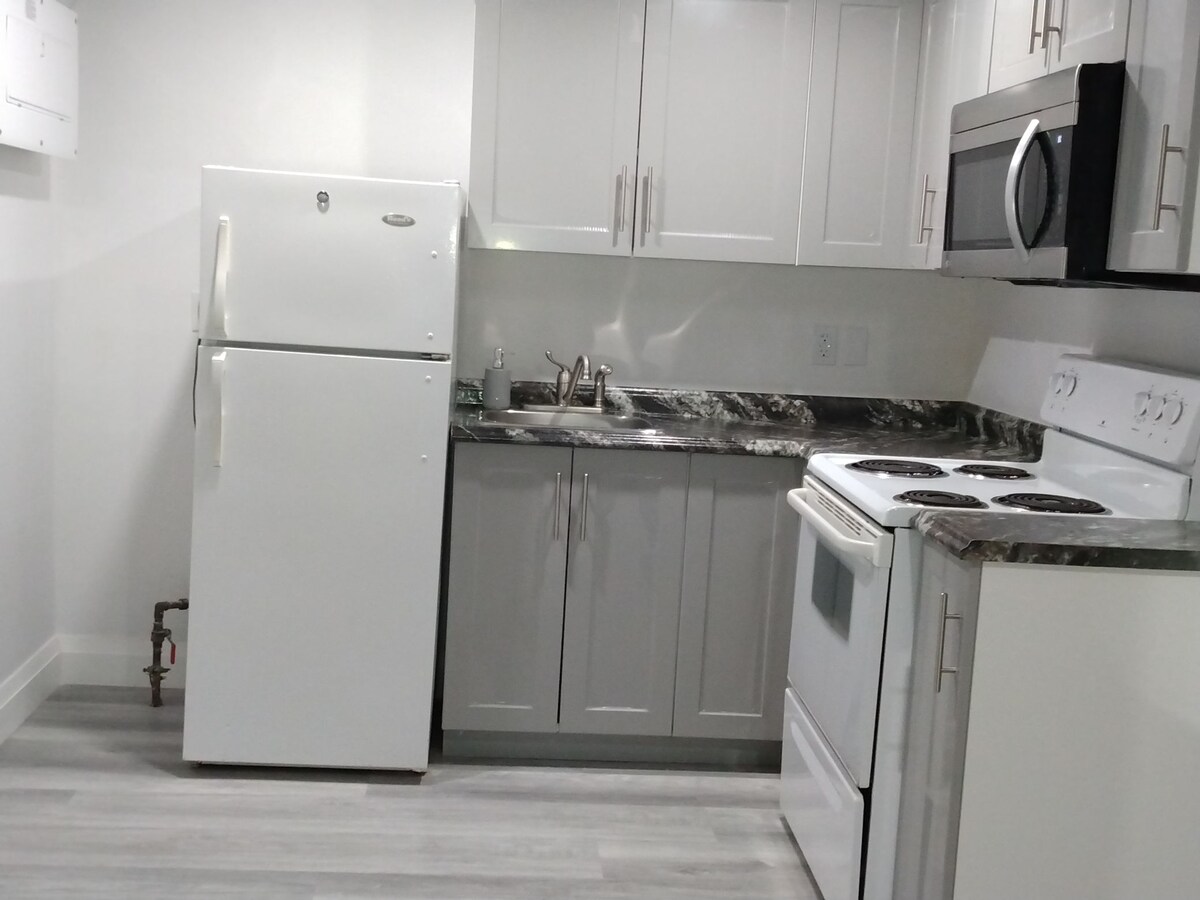Profitez de la beauté de ce sous-sol récemment rénové avec entrée séparée et parking gratuit. à seulement 2 minutes du centre commercial et de Walmart, à 5 minutes du centre-ville, à 55 minutes de la plage de Grand Bend, à 30 minutes de Kitchener/Waterloo. Arrêt de bus à deux pas. Cuisine avec tout ce dont vous avez besoin pour un excellent repas. lave-linge et sèche-linge sont réservés à votre usage personnel et peuvent être utilisés pour un supplément (5 $ en espèces au total) Très lumineux avec d'énormes fenêtres dans la cuisine et la chambre. Bureau d'ordinateur avec lit queen size