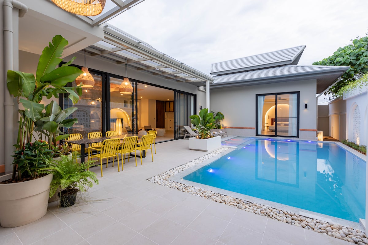 Villa lumineuse et luxueuse avec piscine de 3 chambres avec une belle grande cour à Phuket, pittoresque, sécurité 24 heures sur 24, barbecue extérieur en groupe familial voyage en toute sécurité et pratique, emplacement idéal