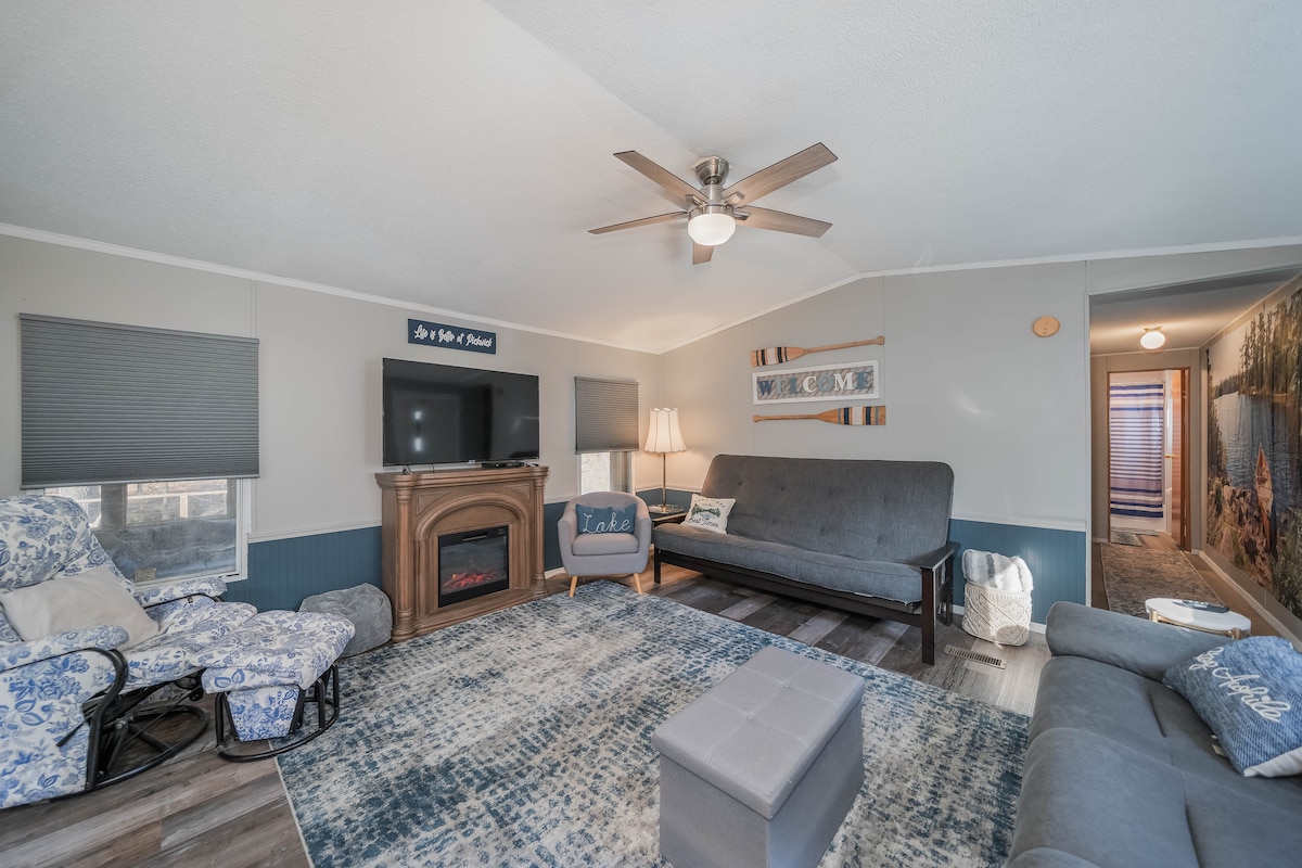 Belle « cabane » située à seulement 1,7 miles de la rampe de bateau de la frontière de l'État. Cette maison de 5 chambres et 3,5 salles de bain est située sur 1,4 acres au bout d'une courte rue avec un grand parking pour les voitures et les remorques de bateau. Il peut accueillir 13 personnes dans les lits, 15 avec l'utilisation des canapés. Grande cuisine ouverte et salon pour toutes les soirées de jeux en famille. C'est notre maison au bord d'un lac que nous utilisons fréquemment, mais nous avons décidé de l'ouvrir à d'autres lorsque nous n'avons pas la chance d'être là.