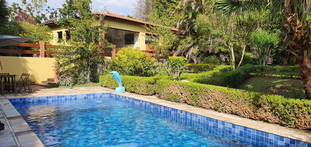 Sabe aquele lugar onde se pode dormir com a janela aberta, chave do carro no contato? É aqui o lugar, Pets são super bem vindos. ANTES DE RESERVAR LEIA ATENTAMENTE AS INFORMAÇÕES DE LOCALIZAÇÃO. Relaxe com toda a família nesta acomodação tranquila, segura e acolhedora silêncio absoluto, integração com a natureza, trilha ecológica e cachoeira na propriedade, Piscina é pequena mais totalmente privativa. a 25 min dos centros urbanos No frio tem lareiras pra aquecer, no calor Piscina pra refrescar.