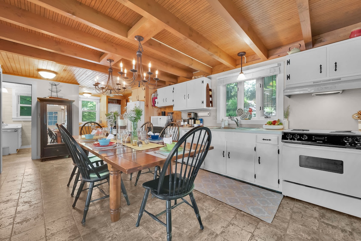 Une maison pleine de lumière et en pleine nature Grands espaces ouverts à l'intérieur et à l'extérieur pour que la famille et les amis passent du temps de qualité ensemble. Situé en haut de la colline, entouré de son propre patio privé avec foyer et barbecue et voisin de notre charmant jardin de cuisine. Notre maison d'hôtes de 2 200 pieds carrés dispose de quatre chambres de taille queen size, une cinquième avec deux lits superposés et trois salles de bains. Détendez-vous dans le salon spacieux ou profitez de la cuisine lumineuse et aérée et de la salle à manger. Une escapade idéale!