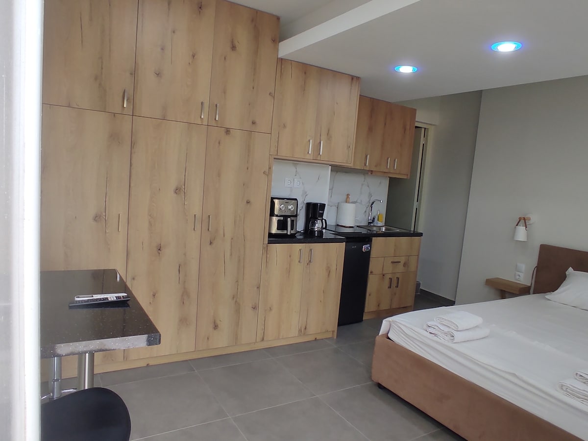 Studio moderne avec une belle vue sur la mer dans le port de Rafina. Emplacement idéal pour ceux qui voyagent avec des ferries depuis et vers les îles. Restaurants, bars, boutiques et plages sont tous à 3 minutes à pied. À seulement 15 km de l'aéroport international d'Athènes, c'est un court trajet que vous preniez le bus ou un taxi/Uber. Entièrement rénové, il dispose d'équipements modernes tels qu'une connexion Internet par fibre optique de 100 Gbit/s et des stations de recharge au chevet pour tous vos appareils. Un lit pour bébé est également disponible sur demande.