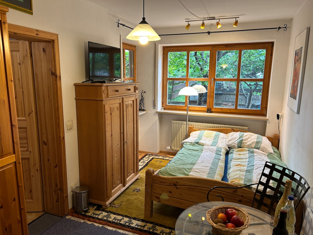 UNE « AMBIANCE DE BIEN-ÊTRE » MODERNE vous attend dans notre GARTENSUITE au 2ème Seereihe à Herrsching am Ammersee ! Situé côté sud, avec terrasse et petit jardin, idéal pour 2 personnes, max. 3 personnes (2 adultes et 1 enfant - lit gigogne). Grand salon/chambre à coucher avec télévision par câble, Wi-Fi cuisine séparée, salle de bains/WC, d'environ 35 m ². Proximité immédiate du lac, gastronomie, jetée à vapeur, parc thermal, train de banlieue. Centre accessible en environ 2-3 minutes.