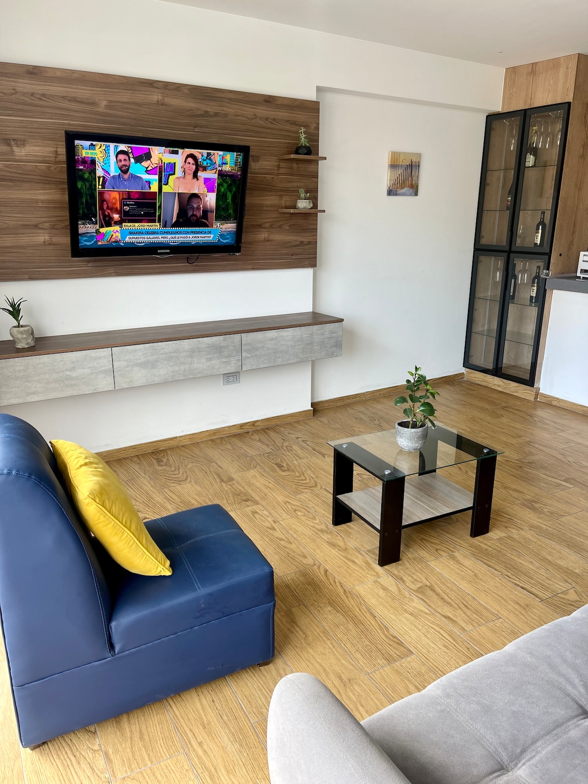 Profitez d'un appartement entièrement meublé dans l'urbanisation exclusive Santa Victoria. • TV 70” L1 MAX - Netflix et Disney+ • 4 minutes de l'aéroport. • 3 chambres (Avec lit King) • 2 salles de bains complètes • Salon et salle à manger spacieux • Cuisine équipée d'appareils électroménagers • Laverie • Ambiances éclairées et ventilées Situé à proximité des parcs, des supermarchés, des restaurants. Idéal pour les familles ou les voyageurs en quête de tranquillité et de sécurité lors de leur séjour
