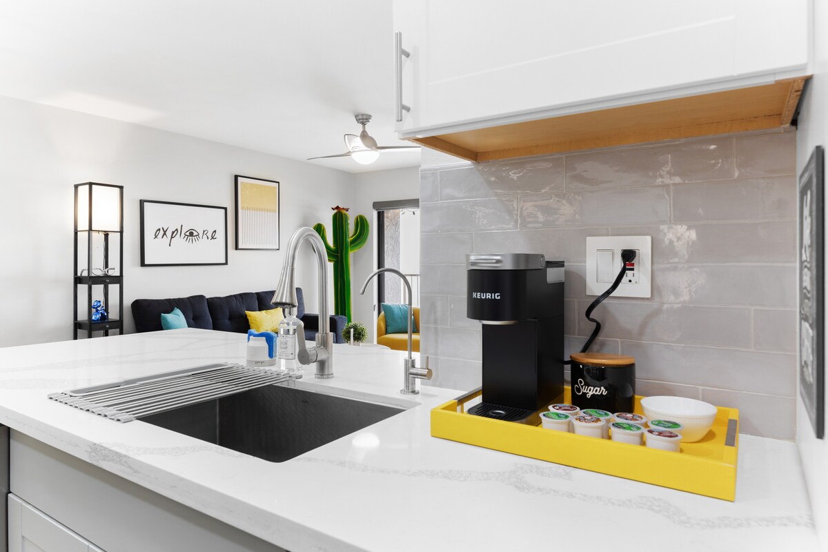 Profitez de cet appartement de plain-pied magnifiquement rénové à seulement quelques minutes à pied du campus de l'ASU ! Profitez d'une pléthore de boutiques et de bars uniques près de l'ASU tout en séjournant avec style à seulement 9 minutes de l'aéroport international Sky Harbor. Assistez à un match d'entraînement de printemps au Tempe Diablo Stadium, au Sloan Park ou dans la vieille ville de Scottsdale (à 15 minutes). Prenez un verre sur la légendaire Mill Avenue et explorez la scène nocturne. À 6 minutes en voiture de l'hôpital Tempe St Luke - Les professionnels de la santé sont les bienvenus !