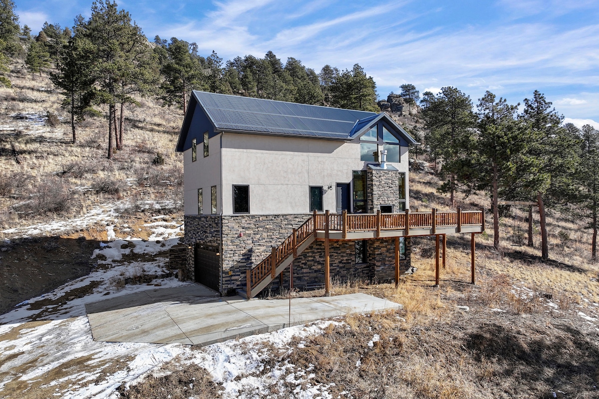 Imaginez-vous vous réveiller avec une vue imprenable sur Black Mountain et le parc d'État de Staunton. Profitez de votre café matinal avec de l'air frais et des vues sur la montagne ou de vos nuits dans le jacuzzi avec des étoiles brillantes au-dessus et des troupeaux d'élans et de cerfs autour. Ou entrez dans la serre pour échapper au froid de l'automne ou du printemps. Cette authentique cabane en A située à seulement 45 minutes de Denver vous offre une expérience de montagne charmante et confortable avec une vue imprenable.
