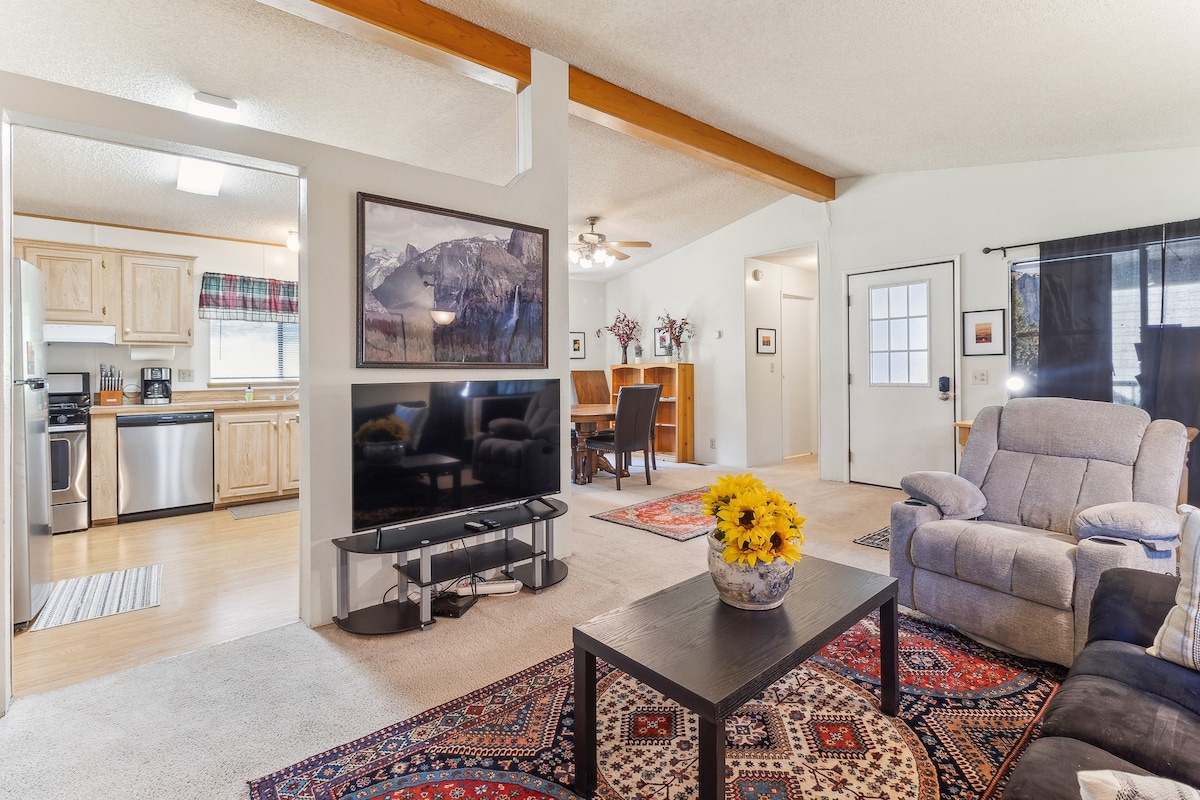The Pleasant View… Détendez-vous dans ce logement unique et tranquille à quelques pas du lac. Profitez de la faune depuis le patio, le salon et la salle à manger de cette maison à concept ouvert. La maison est sur le terrain de golf où toutes sortes de cerfs sont vus tous les jours courir en troupeaux et profiter du terrain. À l'intérieur de la communauté de Pine Mountain Lake, profitez de toutes les commodités, y compris la piscine, le terrain de golf, l'équitation, les courts de tennis, les criques de pêche réservées à la communauté et plus encore. À 20 miles de Yosemite.