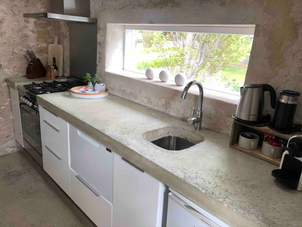Une retraite rurale et rustique sur des terres agricoles privées à 5 km de la ville côtière de Robe. Parfait pour une escapade relaxante en couple, cette conversion unique d'un bâtiment de ferme en calcaire des années 1850 comprend une chambre double en mezzanine et une douche double, un poêle à bois, une machine à café et un barbecue.