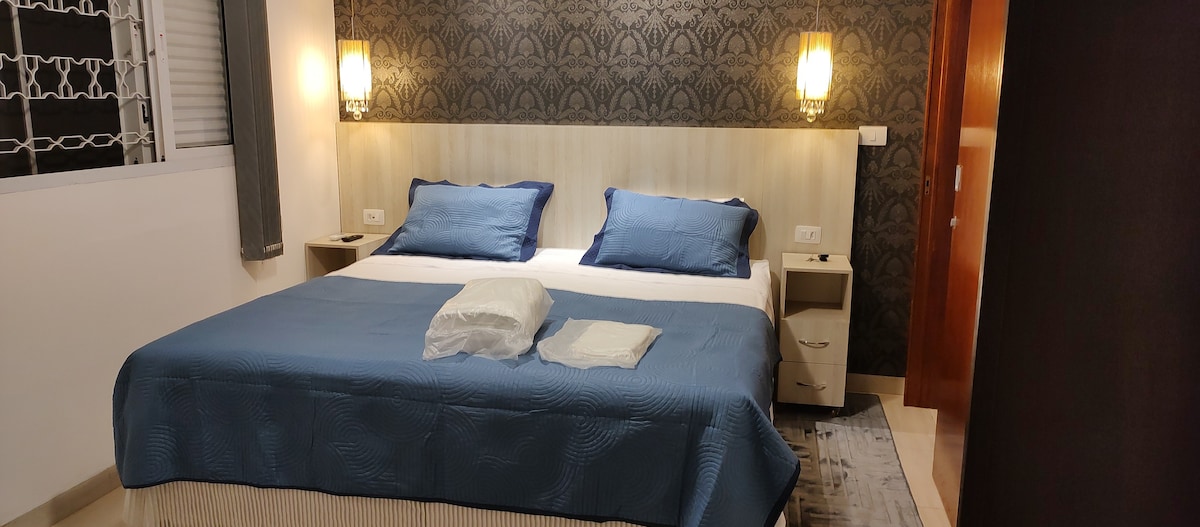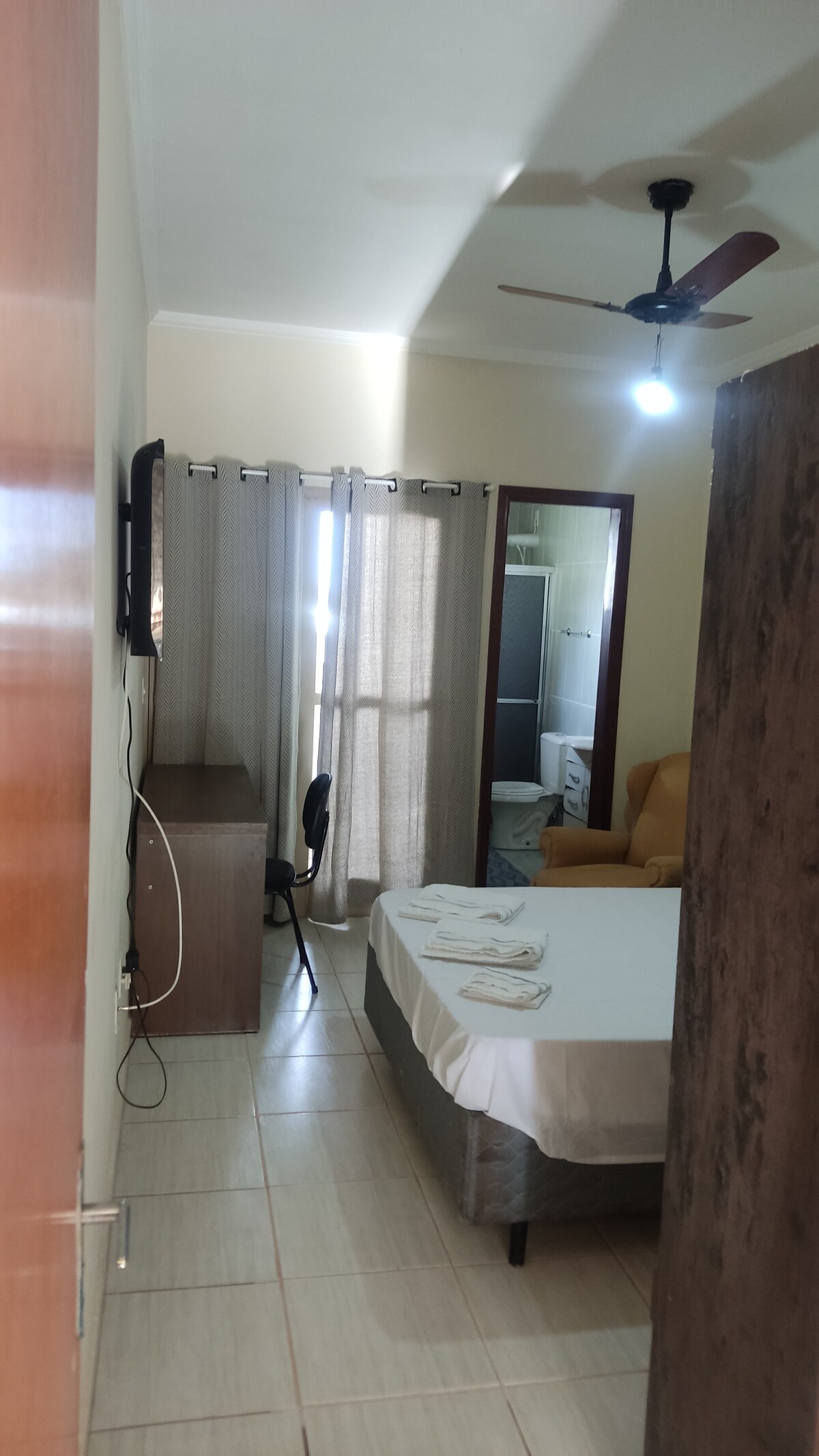 Notre hébergement élégant est parfait pour des séjours courts à longs, avec un bureau en forme de L, un frigo-bar et une connexion Wi-Fi. Il dispose de la climatisation de 22 000 BTU, d'un lit Super King Orthopur + lit simple supplémentaire, d'une finition en porcelaine et d'une télévision connectée avec Netflix. La salle de bains est spacieuse et moderne, à l'usage exclusif du voyageur. Il y a un grand espace extérieur, où vous pouvez utiliser la cuisine, qui est partagée avec les hôtes. Le quartier est sûr dans un quartier haut de gamme, à proximité du marché de Jaú Serve.