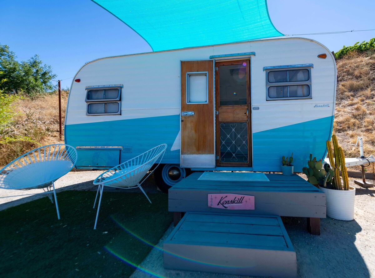 Caravane de glamping Janis Jopplin sur un vignoble de vinyles