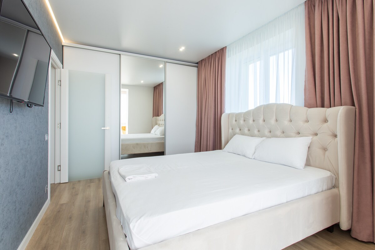 Un nouvel appartement d'élite d'une chambre d'une chambre d'une classe supérieure, maison d'élite, dans l'ensemble du centre de Kharkiv. Appartement de luxe dans le centre dans le centre historique de Kharkov, qui est situé dans Konstytutsii (Constitution) Square 2/2. Le bâtiment où il est situé est appelé la maison avec une flèche et a sa propre histoire riche et atmosphère. J'invite tous les touristes et les voyageurs d'affaires à choisir une expérience de qualité en séjournant dans mes appartements dans le centre de Kharkov !