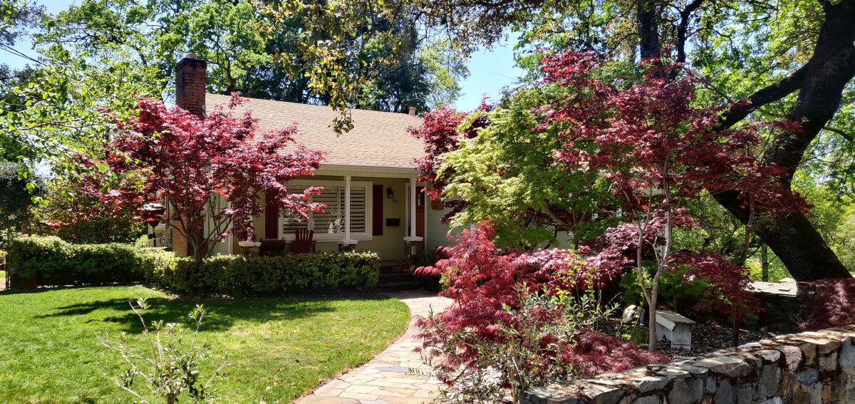 Entièrement meublé avec le confort et le style à l'esprit. Notre suite est prête pour que vous puissiez profiter d'une visite relaxante des Sierra Foothills. Intimité...Oui! Vous disposerez d'un parking privé, menant à une passerelle privée en pierre, arrivant à une entrée privée en plus d'un spacieux patio privé en brique pour voir les cerfs, les dindes et les paysages verdoyants à flanc de colline. Et nous ne sommes qu'à quelques minutes des restaurants, bars à vin et boutiques de la vieille ville d'Auburn. Sentiers pédestres et cyclables à proximité avec sports nautiques sur le lac Folsom!