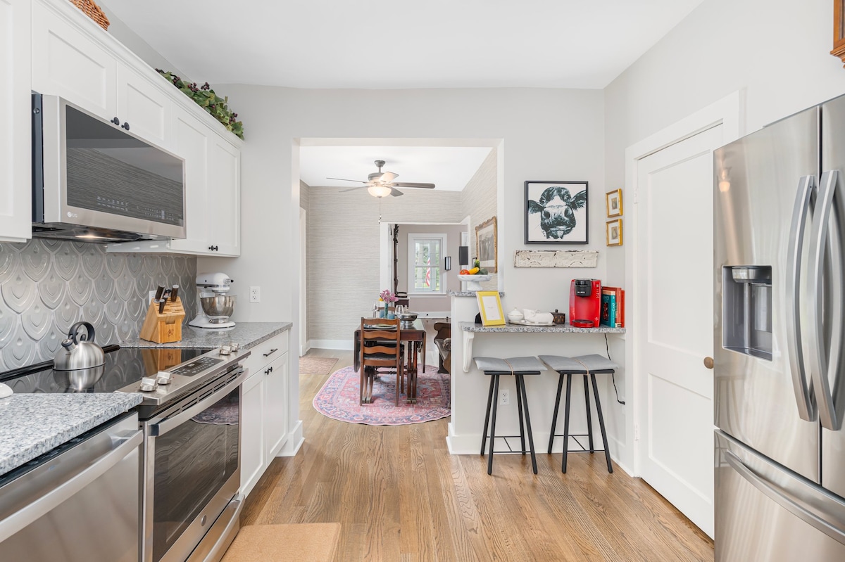 Le Cottage at The Grange est situé sur la paisible rivière Potowomut. C'est une belle maison récemment rénovée de 2 chambres (king, 2 lits jumeaux)/2 salles de bain complètes avec tous les équipements et commodités modernes attendus d'une location de luxe à court terme tout en conservant le charme historique de ce domaine colonial. Cuisinez un repas gastronomique dans la cuisine approvisionnée ou faites un barbecue sur la terrasse. Situé sur 11 acres immaculés, profitez de courts de tennis/pickleball privés, d'un accès en kayak à la baie de Greenwich et bien plus encore !