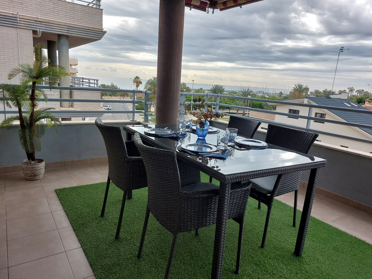 Vous allez adorer l'appartement, l'emplacement est parfait pour se détendre et explorer Puerto de Sagunto et Valence en famille, entre amis ou en tant que travailleurs à distance et nomades numériques. Vous profiterez d'un beau lever de soleil depuis la terrasse principale et d'un coucher de soleil chaleureux depuis la terrasse à l'arrière. En entrant, une sensation de calme mélangée à la brise de la mer te confirmera que tu n'aurais pas pu choisir mieux ! À 25 min de l'aéroport de Valence / 7 min de la gare / 2 min de l'arrêt de bus.