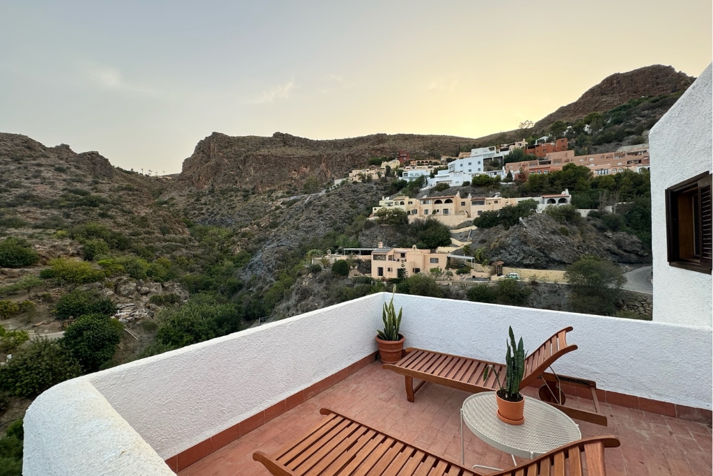 A unique 3-bedroom villa (almeriavilla) located in the heart of Sierra Cabrera, with 360º views, enjoying the most spectacular sunsets. Located just 20 minutes from the blue seas of Mojacar beach, where there are a wide variety of bars & restaurants to choose from. A place of tranquility and rest, the house has a Moorish-style interior patio with a private pool nestled in the rock, ideal for cooling off on hot summer days. Front patio & several other balconies with unobstructed mountain views.