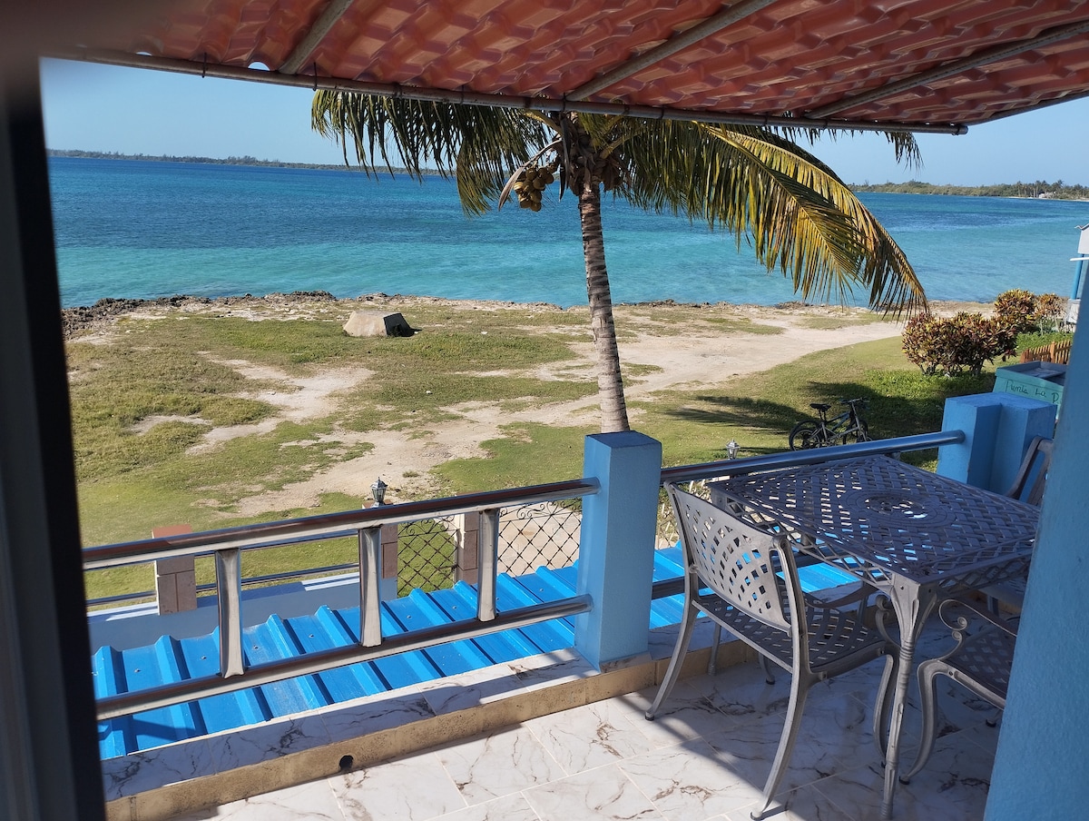 Room #1. Steps from the Sea. Free Wi-Fi. Private entrance with no architectural barriers. Spotless. Cozy and compact. ✓White sheets and towels. ✓Air conditioning. ✓Table fan with battery and lamp. ✓Wall fan. ✓Safe. ✓Hair dryer. ✓Clothes hanger. ✓Window with street view. Terrace overlooking the Bay of Pigs. Owner is a specialist in medical services. We use solar energy in our home. Part of a family agroecology project.