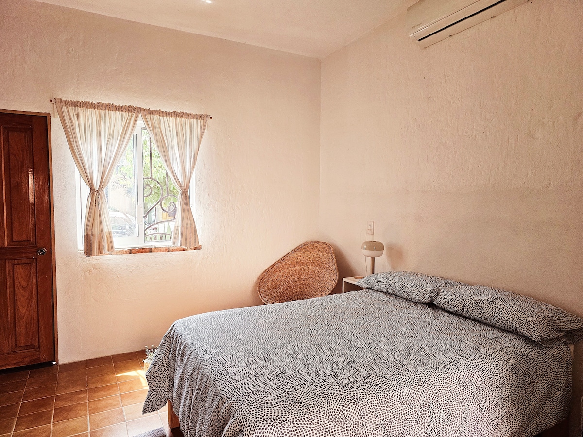 Appartement très petit et confortable avec un lit Queen. Elle est entourée d'un jardin à l'arrière de notre propriété avec 6 autres unités dans la partie avant qui composent tous ensemble notre « Sayulita Oasis ». Il dispose d'une salle de bain privée attenante. Veuillez noter qu'il n'y a pas de cuisine / réfrigérateur. N'hésitez pas à utiliser la petite piscine partagée située à l'avant. Veuillez également regarder la dernière photo. Il montre et décrit la disposition de l'ensemble de la propriété et de toutes ses casitas et des espaces communs comme la piscine ou les jardins.