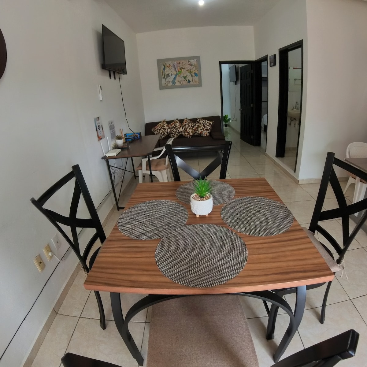 Reposez-vous, profitez et vivez une expérience en famille au cœur de la nature, de la flore et de la faune, dans un appartement spacieux et moderne situé dans une maison en duplex. Le logement de cette annonce est un appartement au deuxième étage ; et seul le hall où se trouvent les escaliers menant à la porte d'accès à l'appartement est partagé. La propriété est située dans le développement touristique nautique Nuevo Nayarit (Nuevo Vallarta) entre les canaux de la Marina et la mer. INFORMATION : Il n'y a pas de piscine.