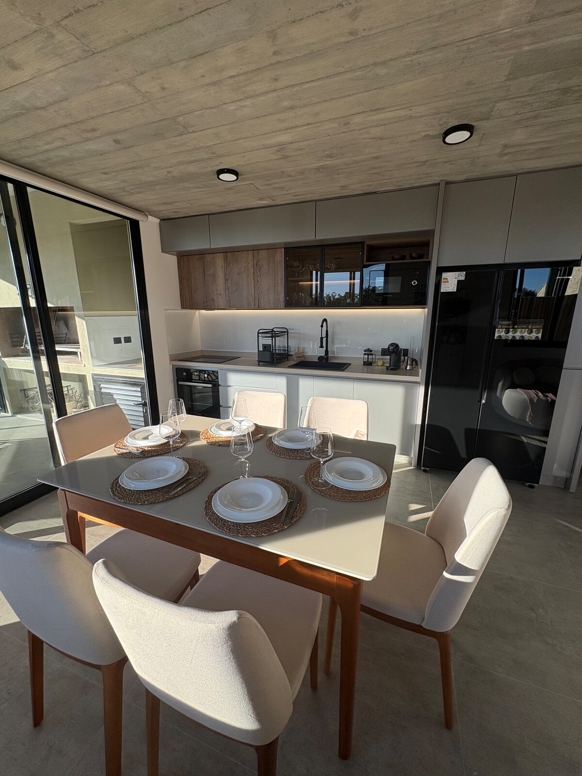 À 3 km de Jose Ignacio, Maison 100% en bois, idéale pour les couples en quête de tranquillité. Il a une belle vue sur la lagune de Jose Ignacio et la mer, et se trouve à 50 m de la plage. Il dispose de deux chambres lit queen-size et capacité pour 4 personnes. La salle à manger et la cuisine sont entièrement équipées. Le deck de la piscine est orienté vers le coucher du soleil. Pour les amateurs de kitesurf, nous comptons sur l'accès direct à la lagune.
