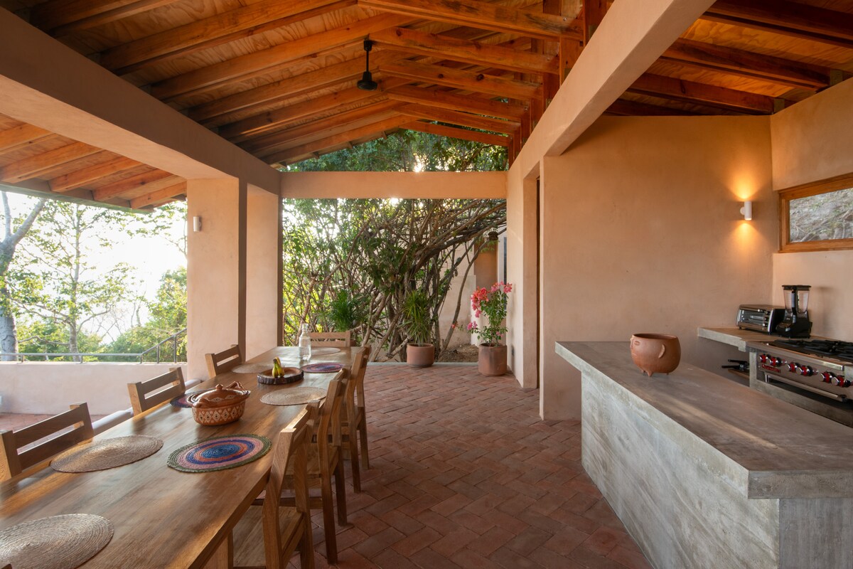 Bienvenue à Monte LALALA, Situé sur la colline de Mermejita, Monte LALALA offre une retraite paisible avec une vue exceptionnelle sur l'Ocean Pacifique. La maison est constituée de 3 espaces pour 12 pers. - Cuisine ouverte + lounge et piscine - Suite de 2 chambres avec vue panoramique - Suite de 2 chambres dans un jardin tropical 10 min de voiture de Mazunte/plage - chemin de terre cabossé **30 marches por acceder a la maison** Eau chaude, ventilateurs, moustiquaires et WIFI. @monte_lalala