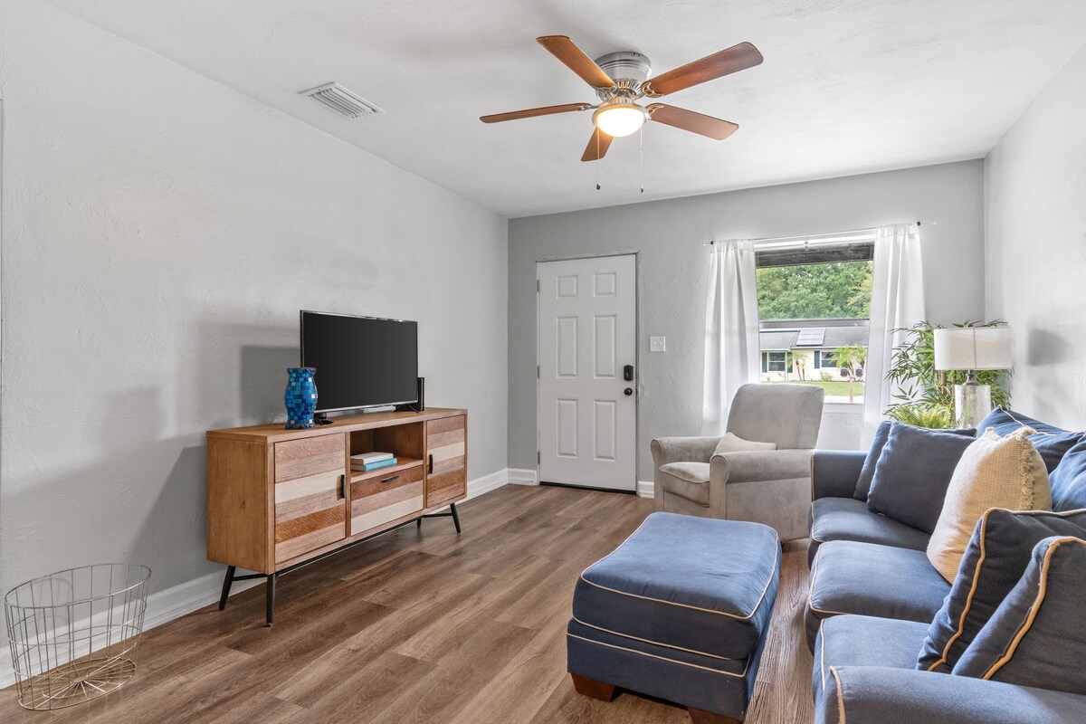 Évadez-vous dans notre charmante retraite familiale de 3 chambres et 1 salle de bain près du centre-ville de Winter Haven, en Floride, un havre pour les familles ! Profitez d'un lit King Size, d'un lit Queen Size et de deux lits jumeaux, ainsi que d'un salon confortable avec télévision pour passer des moments de qualité ensemble. Cuisinez dans la cuisine entièrement équipée et restez connecté avec une connexion Wi-Fi haut débit. Vos amis à quatre pattes adoreront la cour clôturée ! Situé entre Tampa et Orlando, à proximité de Legoland, Bowen Yard, The Joinery, du centre-ville et des sentiers pittoresques, c'est une base idéale pour explorer le centre de la Floride.