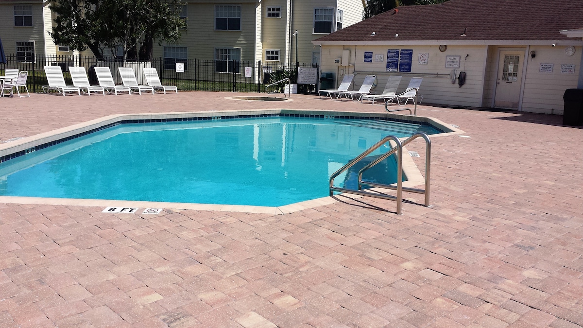 Espace paisible, lumineux et accueillant - Gated Townhouse Community. Profitez de Pratique - à moins de 30 minutes des parcs à thème d'Orlando. Hauts plafonds et grande lumière. Nouvelle cuisine et unité de climatisation ! Style moderne, matelas confortables, kitchenette équipée. Stationnement facile. Télévision avec Câble. Autant d'intimité que vous voulez, hôtes réactifs. En outre, il comprend des équipements pour les bébés , Playard , les tout-petits avec une chaise haute pour manger avec des ustensiles et des assiettes pour enfants.