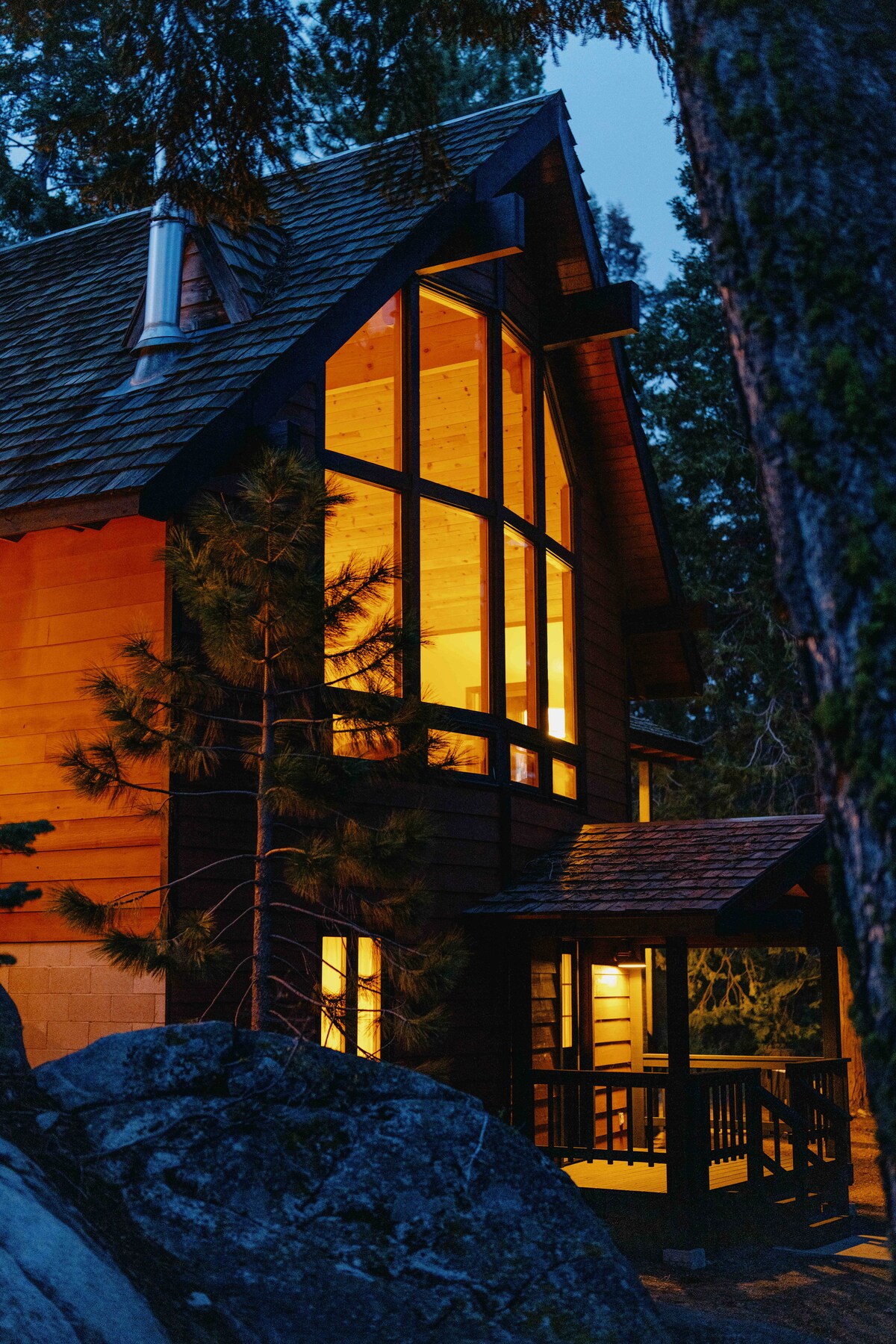 Respirez et détendez-vous sur un flanc de montagne privé dans le Giant Sequoia National Monument. Utilisez-le comme camp de base pour faire de la randonnée dans les Géants, du VTT, faire du toboggan aquatique naturel ou ne jamais quitter la propriété. Plus de 5 acres privés avec son propre ruisseau et de nombreux sentiers. L'espace lumineux et ouvert est décoré avec des meubles design et dispose d'une cuisine bien approvisionnée, d'un home cinéma, d'un jacuzzi, d'un sauna et de billards. Les bureaux et le Wi-Fi Starlink en font une destination de travail à distance idéale.