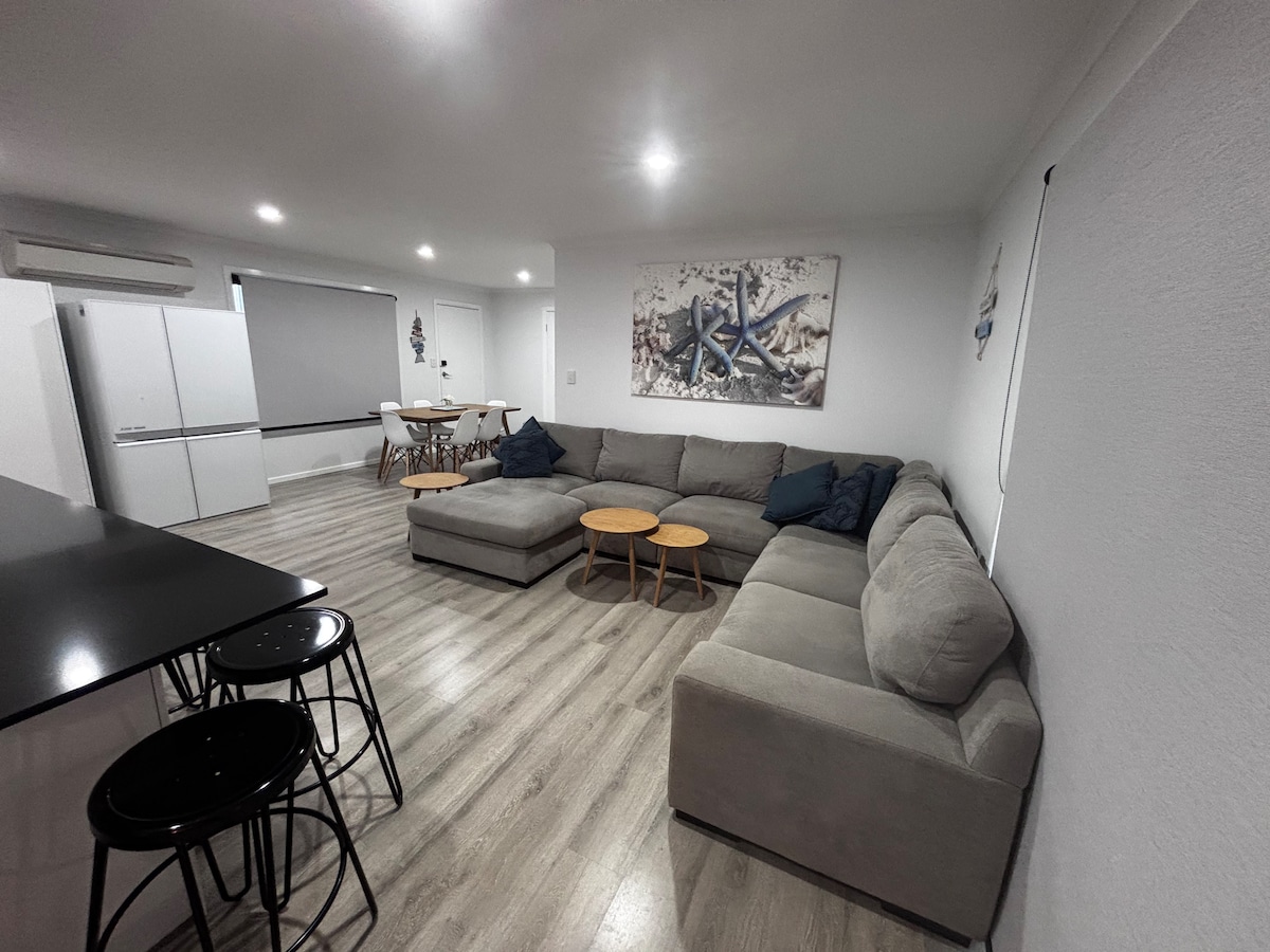 Grand logement d'une chambre, situé sur son propre terrain. Situé dans une partie plus calme de Moonta Bay. Vous êtes à quelques minutes en voiture des commerces de Moonta et des mines historiques de Moonta. À quelques minutes en voiture de la plage et de la jetée de Moonta Bay, qui comprend un parc aquatique gratuit pour que les enfants jouent sur le rivage. À 5 minutes en voiture de la rampe de mise à l'eau de Pt Hughes. Il y a beaucoup de places de stationnement hors de la rue et de la place pour que les enfants puissent faire du vélo en toute sécurité loin de la route. Les petits chiens sont autorisés à l'extérieur.