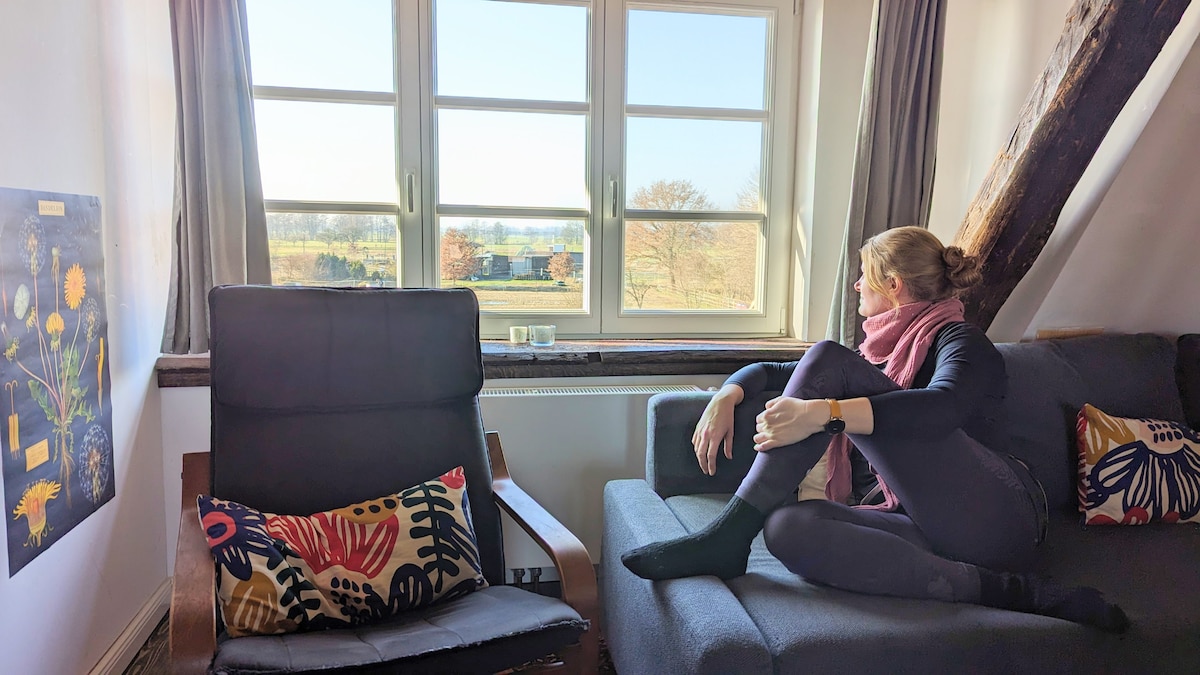 Ein ruhige OG-Wohnung im Schwedenhaus mit schönem Ausblick über die Felder und in den Garten in einem kleinen Dorf, sehr ländlich gelegen, zwischen Hollenstedt, Tostedt und Buchholz in der Nordheide (Nähe A1). Das Schlafzimmer verfügt über 1 kleines Doppelbett für 1 oder 2 Personen, (1,40x2,00m). Die Wohnung steht zur alleinigen Nutzung zur Verfügung. * Bitte um genaue Angabe der Personenzahl. Daraus ergibt sich der entsprechende Preis für die Wohnung.
