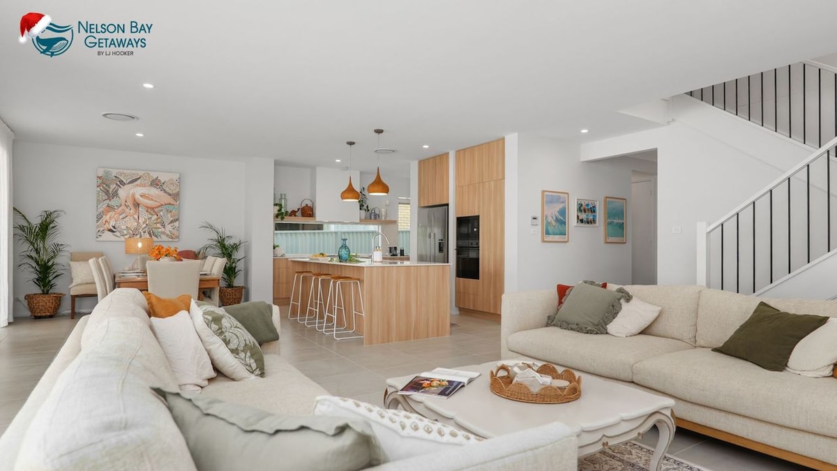 Idéalement situé par rapport à tout ce que Nelson Bay a à offrir. Maison moderne de 3 chambres avec 2 salles de bain. Cuisine avec lave-vaisselle, salle à manger séparée, le salon dispose d'un canapé-lit double gigogne. Télévision connectée et Wi-Fi. Chambre principale avec lit Queen Size et salle de bain privative. Deuxième avec lit Queen Size. Troisième avec 2 lits King Size simples. Climatisation centrale. Stationnement CVRD pour 3 voitures avec station de charge EV. Cour arrière sécurisée avec aire de jeux pour enfants. Espace barbecue extérieur couvert pouvant accueillir 10 personnes. À quelques pas des cafés, restaurants, boutiques, plages et de la marina. Désolé, pas d'animaux de compagnie.