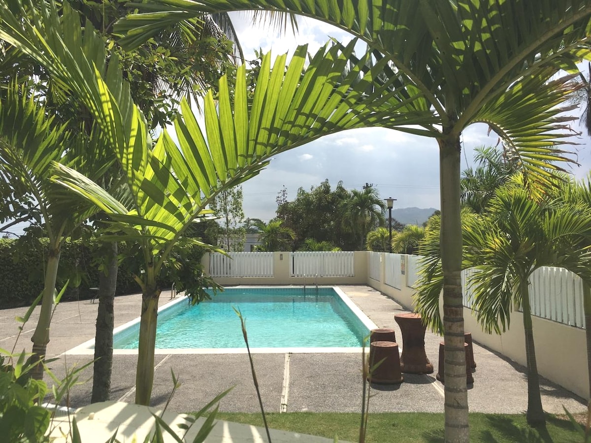 Communauté de campagne sécurisée 24h/24 et 7j/7. Idéalement situé à 5 minutes du centre-ville dans les collines d'Ocho Rios niché au milieu d'une végétation tropicale luxuriante et à deux pas d'attractions célèbres telles que Dunn's River Falls, Dolphin Cove, Margaritaville, Mystic Mountain Rainforest, Konoko Falls and Park et de nombreux restaurants raffinés. Nous offrons une retraite de luxe bien aménagée comprenant une connexion Wi-Fi rapide, une piscine, des chambres entièrement climatisées, des téléviseurs grand écran dans toutes les chambres pour votre confort et votre commodité.