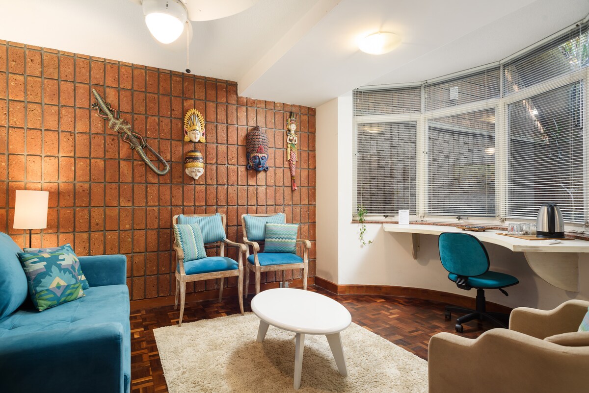 Appartement entier au rez-de-chaussée avec climatisation partagée et accessibilité pour les besoins spéciaux. Aconchegante et complet, avec Internet Wifi 100 Mo, capacité jusqu'à 6 personnes, patio et garage privé. Situé dans l'un des quartiers les plus charmants de Porto Alegre avec un accès facile à n'importe quelle partie de la ville, à côté du Parque Germânia/Shopping Iguatemi.