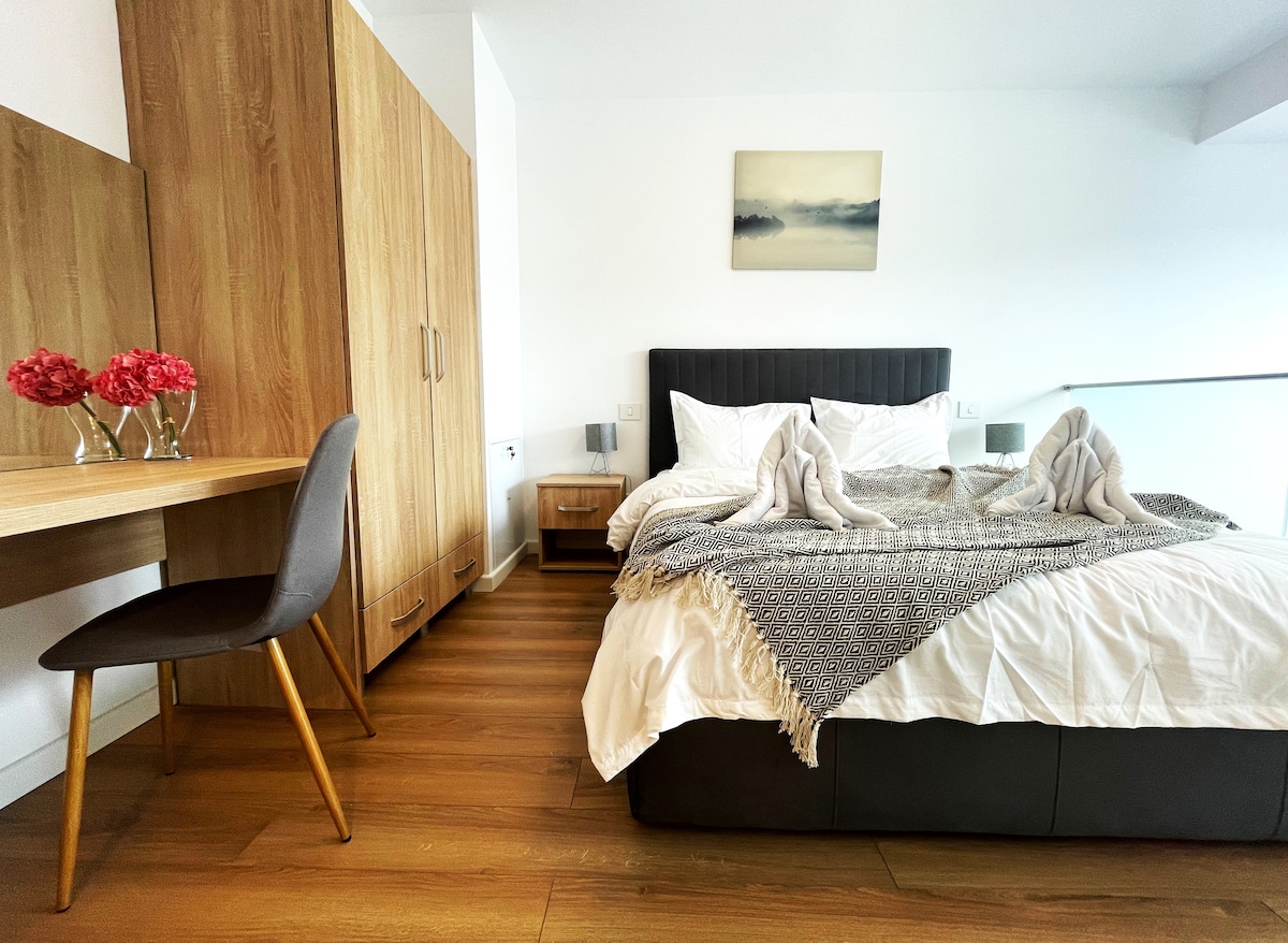Experience modern comfort at RoseWood Boutique Apartment, located in Green Future Residence, an apartment building offering guests paid access to a spa area with an indoor pool, sauna and fitness equippment. Our apartment is designed with a fully equipped kitchen, Smart TVs, and essential amenities. Enjoy the dedicated parking place in the underground parking. Explore charming Sinaia with ease, blending contemporary aesthetics with thoughtful details for a rejuvenating stay!