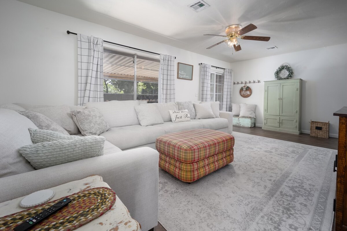 Unlike most Airbnb properties that were once someone’s primary residence, Twin Lakes Cottage (TLC) was built from the ground up to be a perfect home-away-from-home for guests. TLC is a newly built, luxury, modern farmhouse cottage on 2 fenced & gated acres near Shawnee Twin Lakes, OK. Features a King bed, large walk-in shower & soaking tub, full size washer/dryer, and a fully equipped kitchen. A six-foot wagon-wheel ceiling fan centers the open studio style floor plan with 14ft vaulted ceilings.