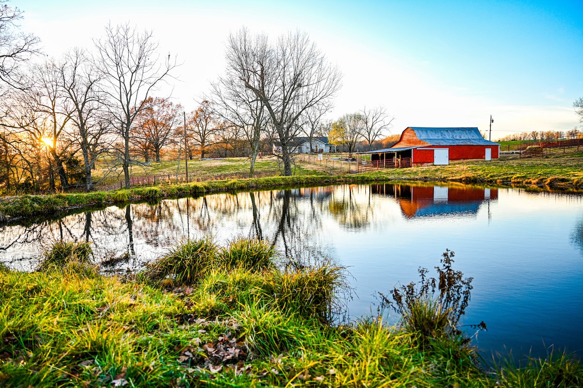 Venez séjourner dans une ferme d'élevage familiale avec plus de 200 acres de paysage magnifique et de vues magnifiques. Profitez de votre café/cocktails sur le porche d'une ferme du début du siècle tout en observant la faune abondante du sud du Missouri, y compris les cerfs à queue blanche, la dinde et d'autres créatures. Nous sommes également une ferme acceptant les animaux de compagnie. La cour arrière est clôturée pour la sécurité de vos proches. Des frais de 10 $ par jour et par animal sont dus à votre arrivée.